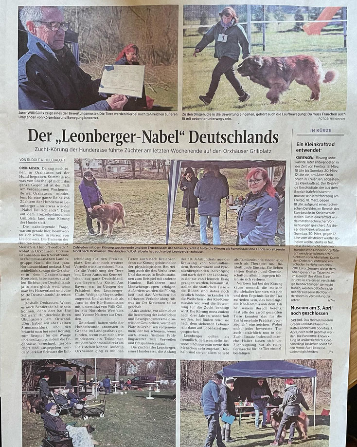 Sendet mir doch viele Bilder und Anregungen, auch über Vorschläge zu Leonberger-Treffen oder Spaziergängen würde ich mich freuen.